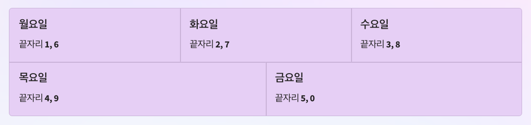 - 월(1,6) / 화(2,7) / 수(3,8) / 목(4,9) / 금(5,0) 순서로 신청이 가능합니다.