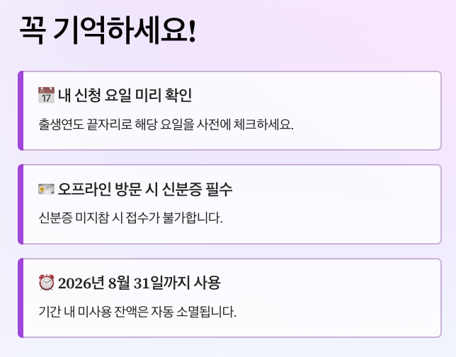 지급된 지원금은 2026년 8월 31일까지 사용해야 하며, 기간 내 사용하지 못한 잔액은 소멸되므로 고유가 피해지원금 신청방법 완료 후 지급받으시면 즉시 사용처를 확인하시기 바랍니다.